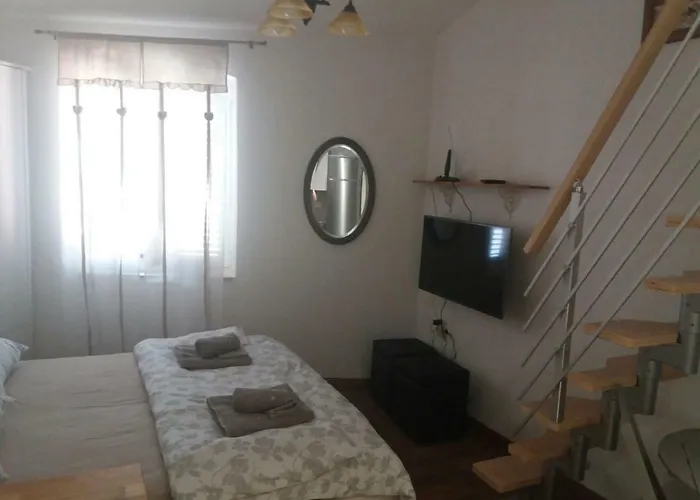 Featuring views of the city, the 26 m^2 Apartman Studio Petar Apartment is located within a 10-minute drive of Beach Bene. Access to windsurfing, snorkelling, and diving is offered for active guests.